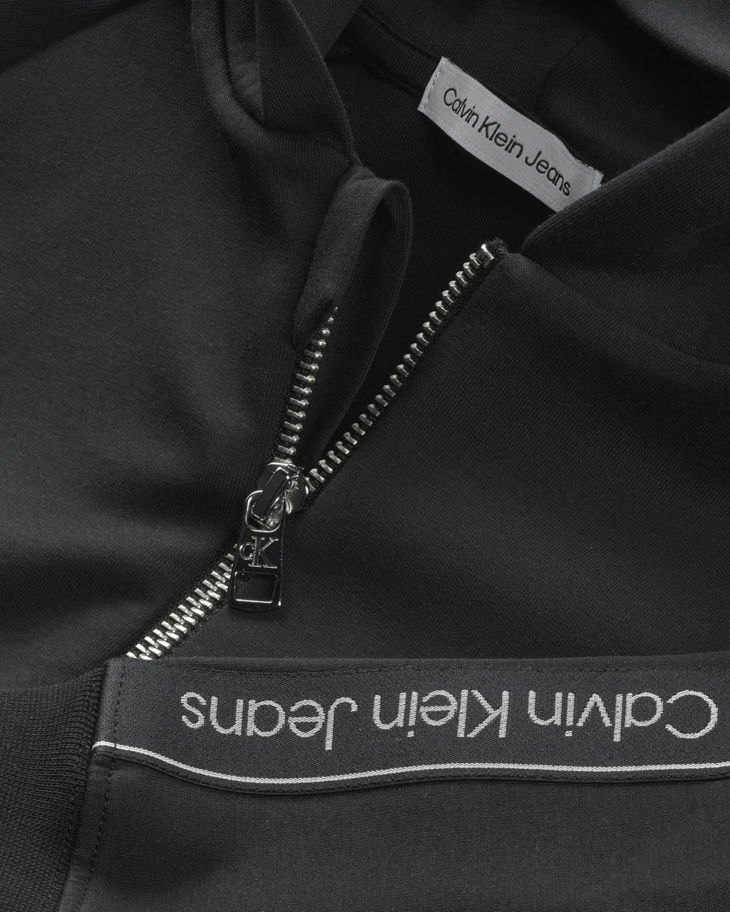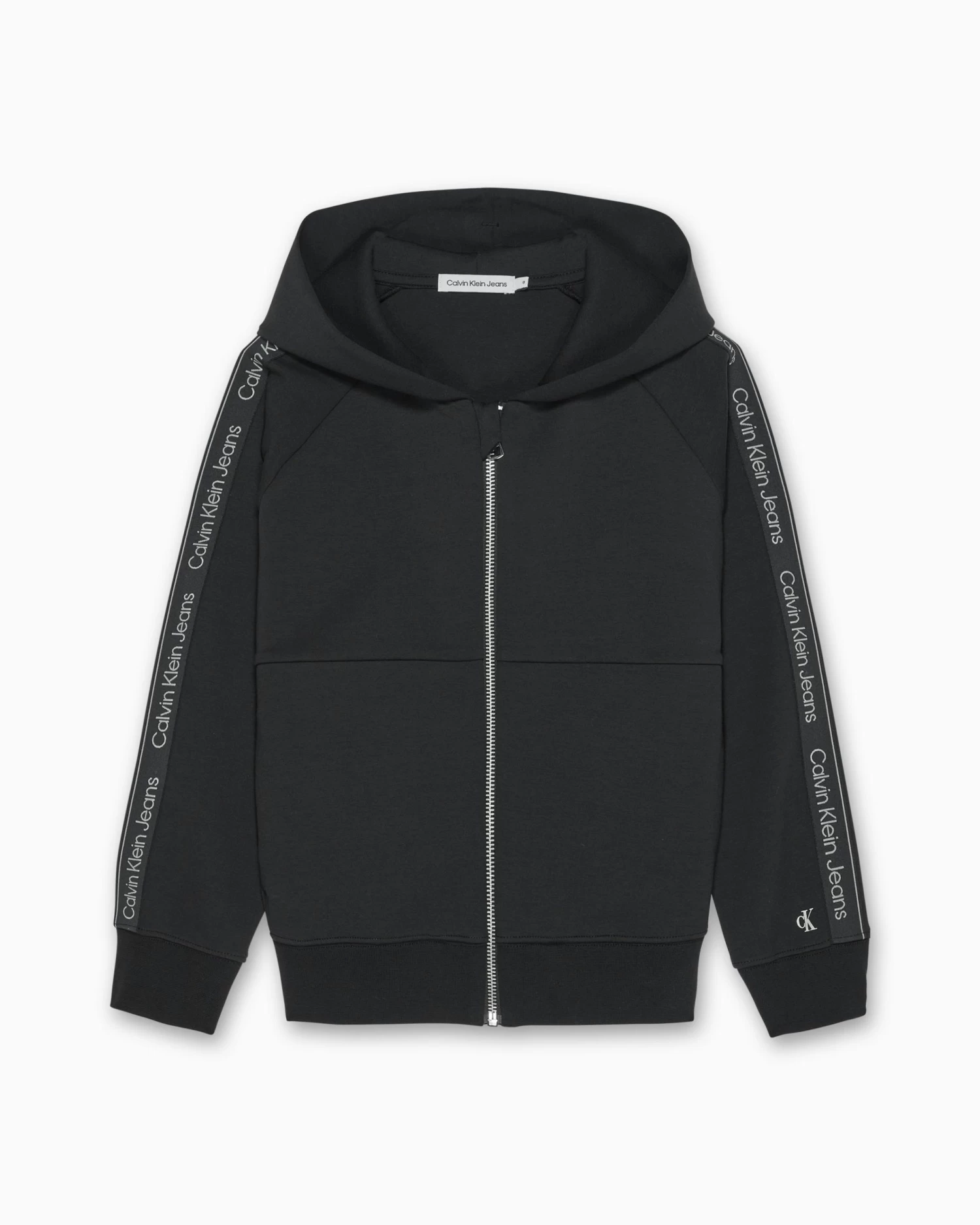 From everyday favourites to style-conscious looks, Calvin Klein Jeans Kids combines quality materials and trend-perfect colours with iconic logos on directional designs. This zip up sweatshirt is complete with a hooded neckline, rib-knit cuffs and hem and Calvin Klein signature tape trims on the long sleeves.