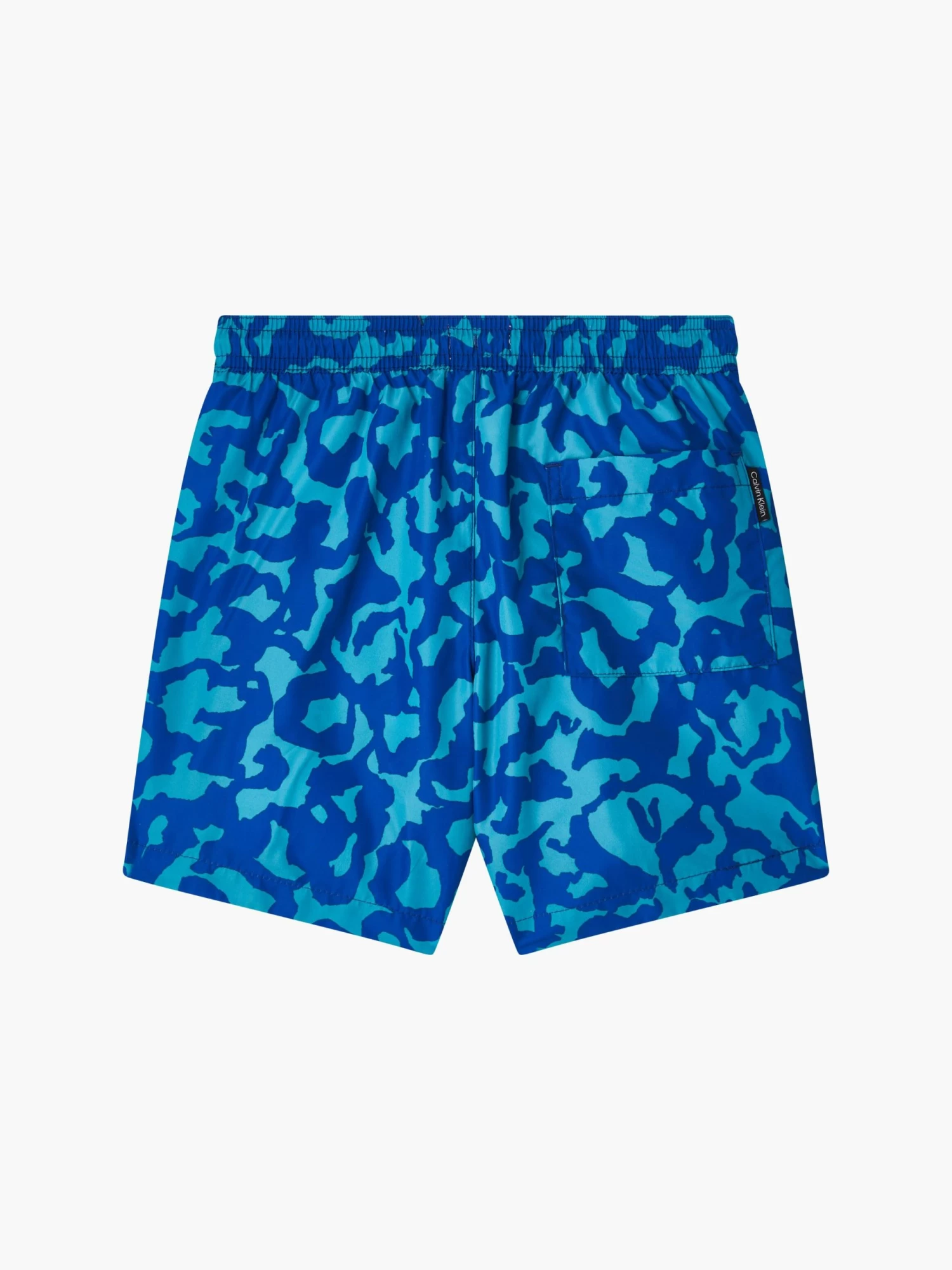 Crafted from durable recycled polyester, these swim shorts are cut to a medium length with slit pockets and an all-over print.