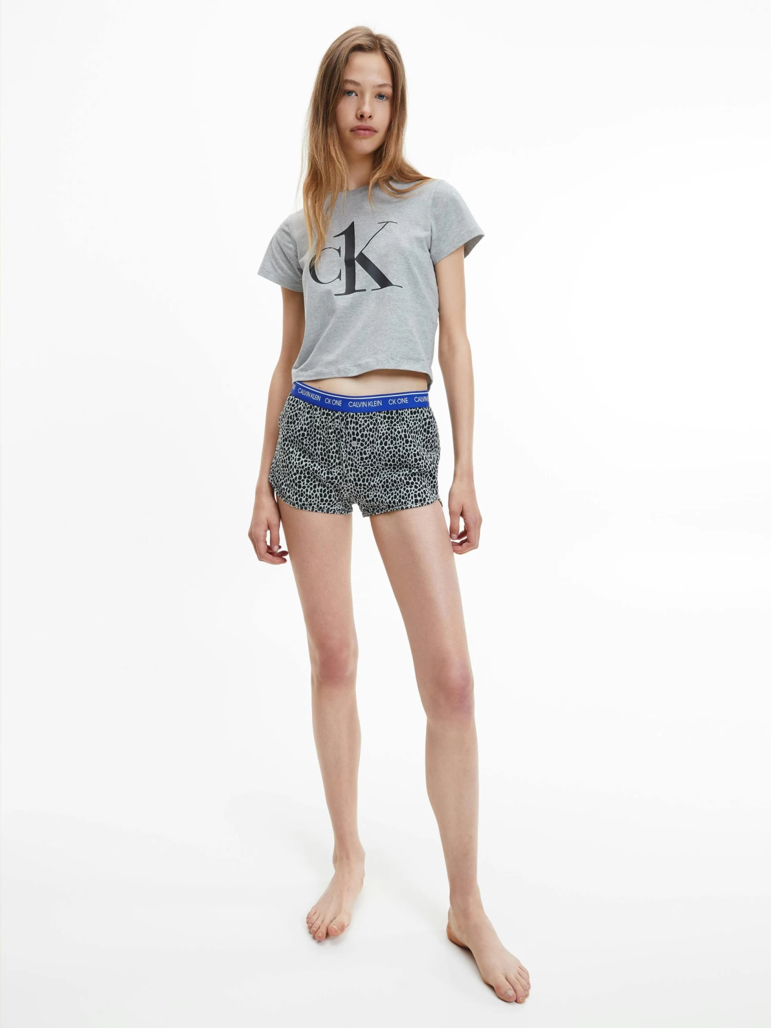 CK ONE SLEEP is our classic logo sleepwear range cut from super soft fabrics perfect for easy dreamers everywhere. this sleep set features a cotton stretch fabrication, crew neckline, signature tape inside the neckline, short sleeves, logo print on the chest, medium rise waist, short straight legs, logo print on the leg, and a signature elastic waistband.