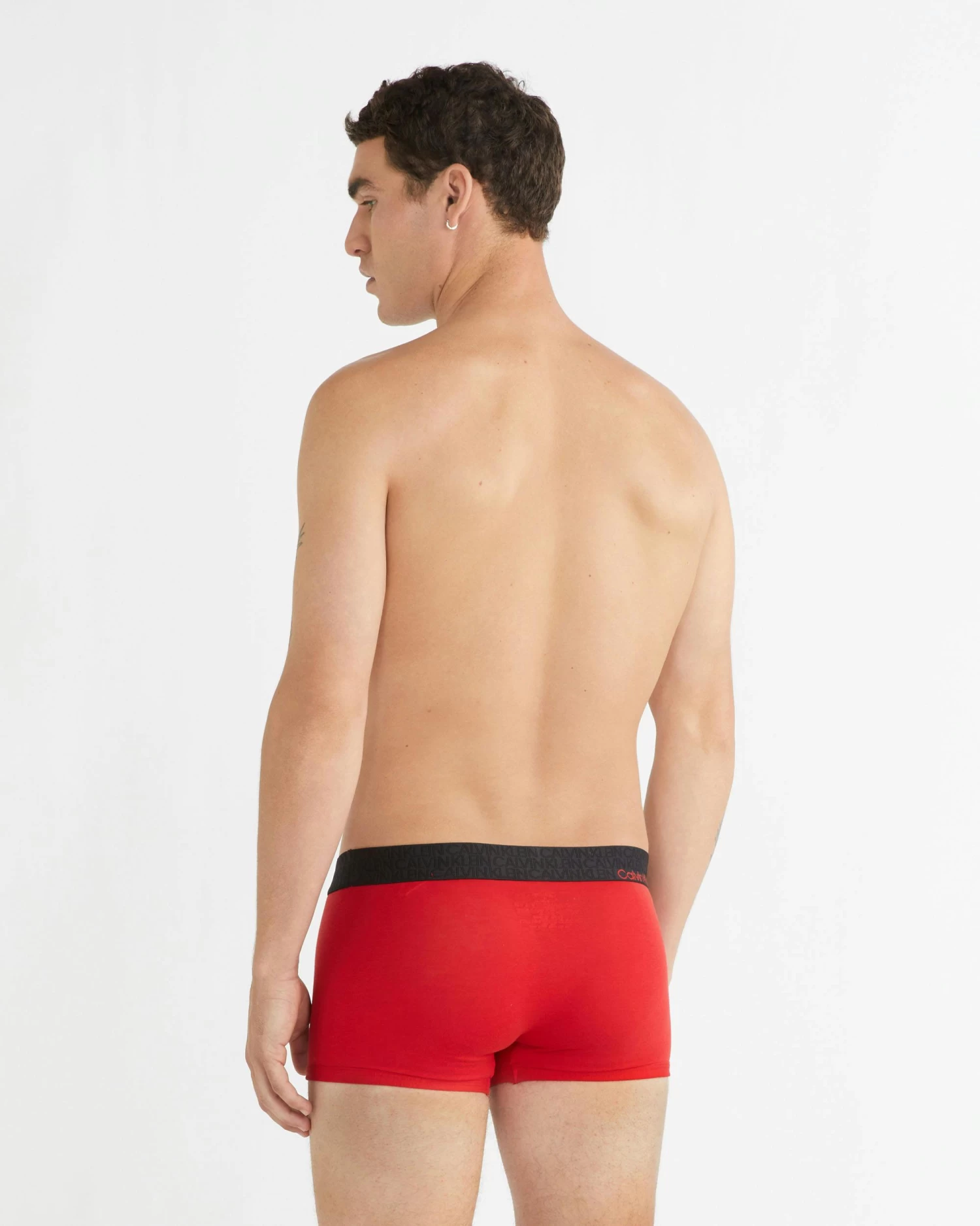 Consciously crafted CK RECONSIDERED COMFORT helps support a more sustainable future. This trunk is made with soft-feel Refibra™ jersey; a biodegradable blend of recycled cotton and wood fibres. Complete with a medium rise waist and a logo jacquard elastic waistband.