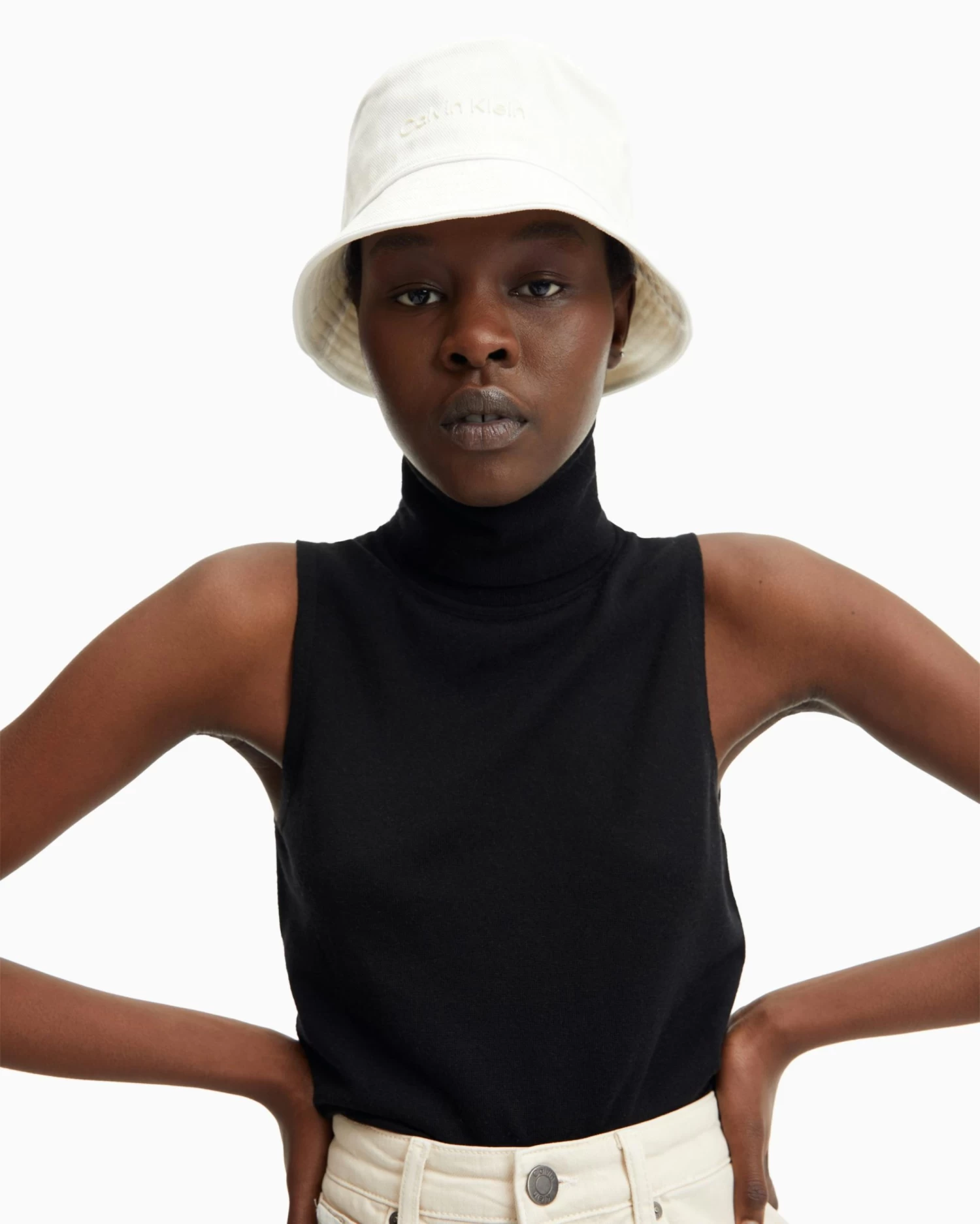 Bring an on-trend aesthetic to your look with this bucket hat, featuring a Calvin Klein logo on the front and crafted from 100% cotton.