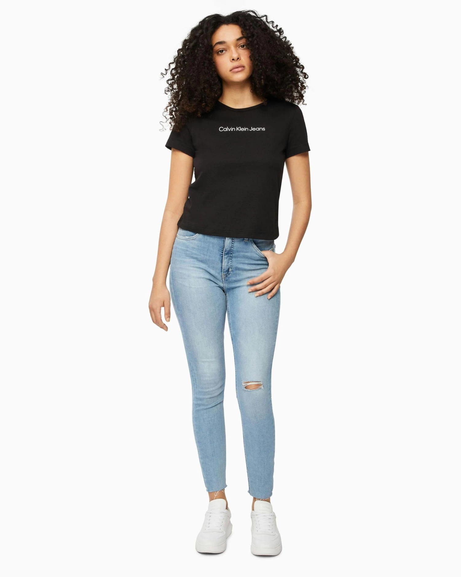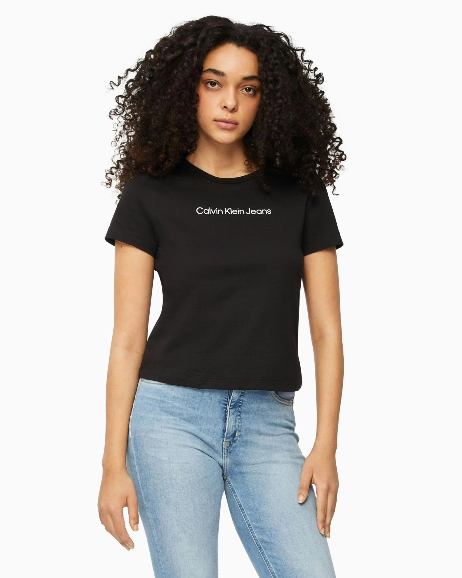 Clean. Effortless. Inclusive. Discover quintessential Calvin styles in an extended size range, designed for every body. Update your wardrobe with this womens Organic Cotton Institutional Logo T-shirt.