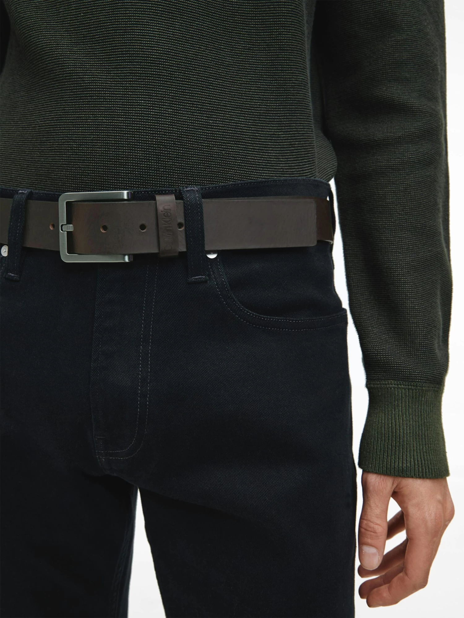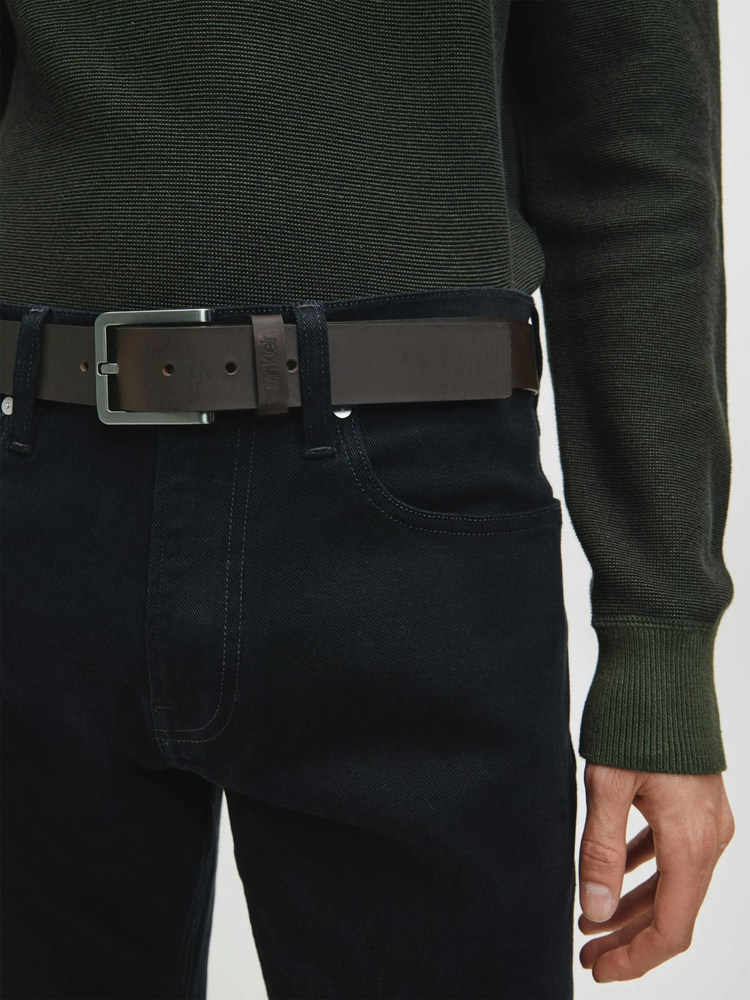 Update your wardrobe with this Leather Belt from Calvin Klein.