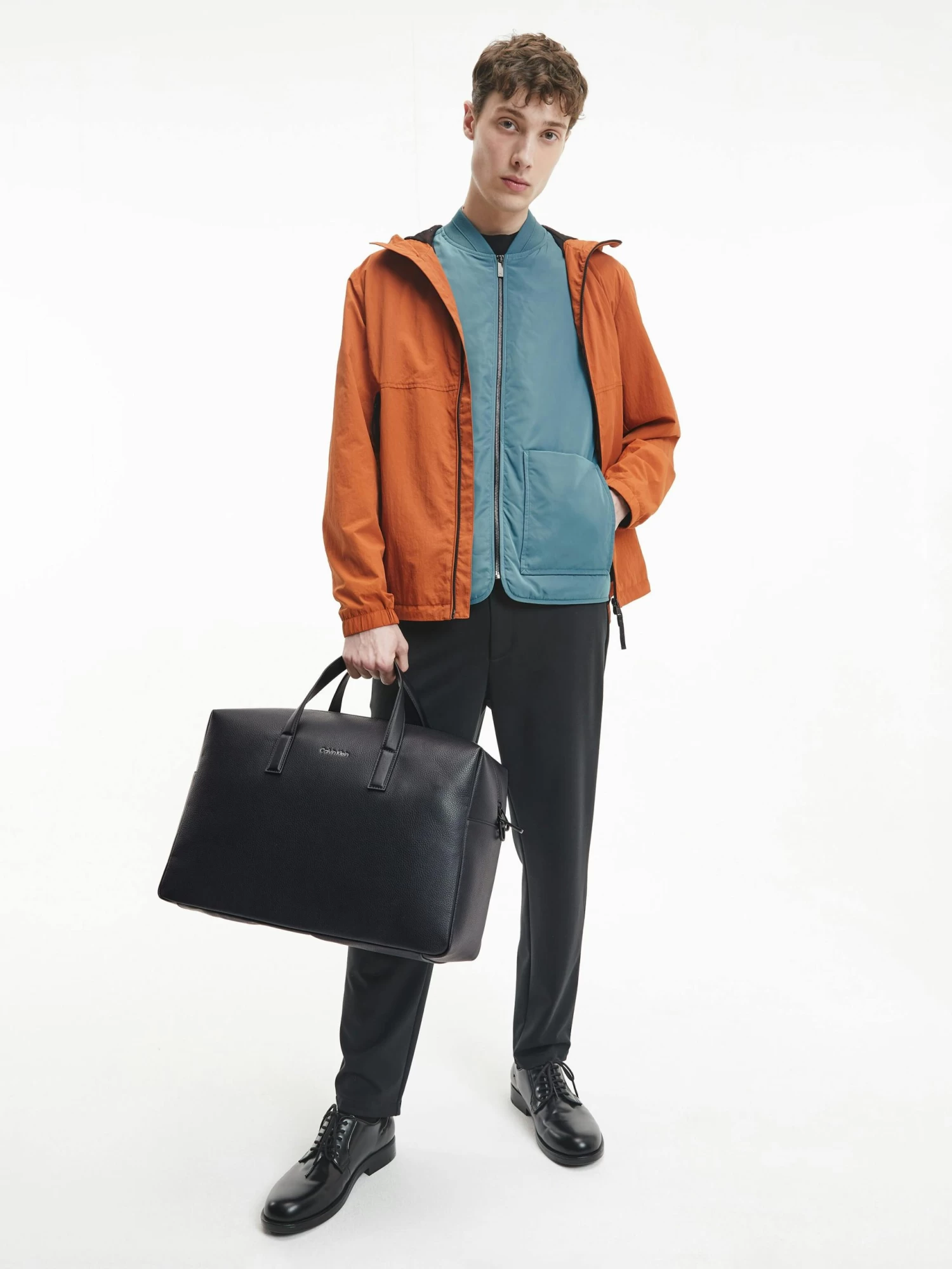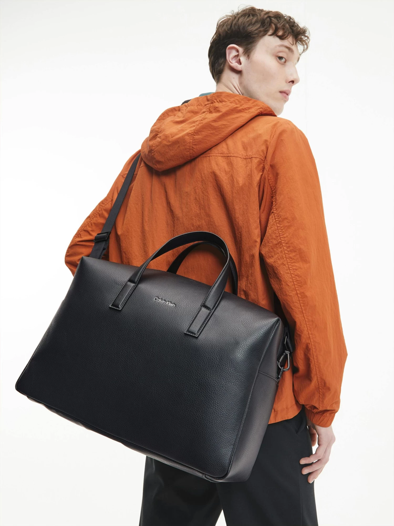 - Calvin Klein metallic embossed logo on the front