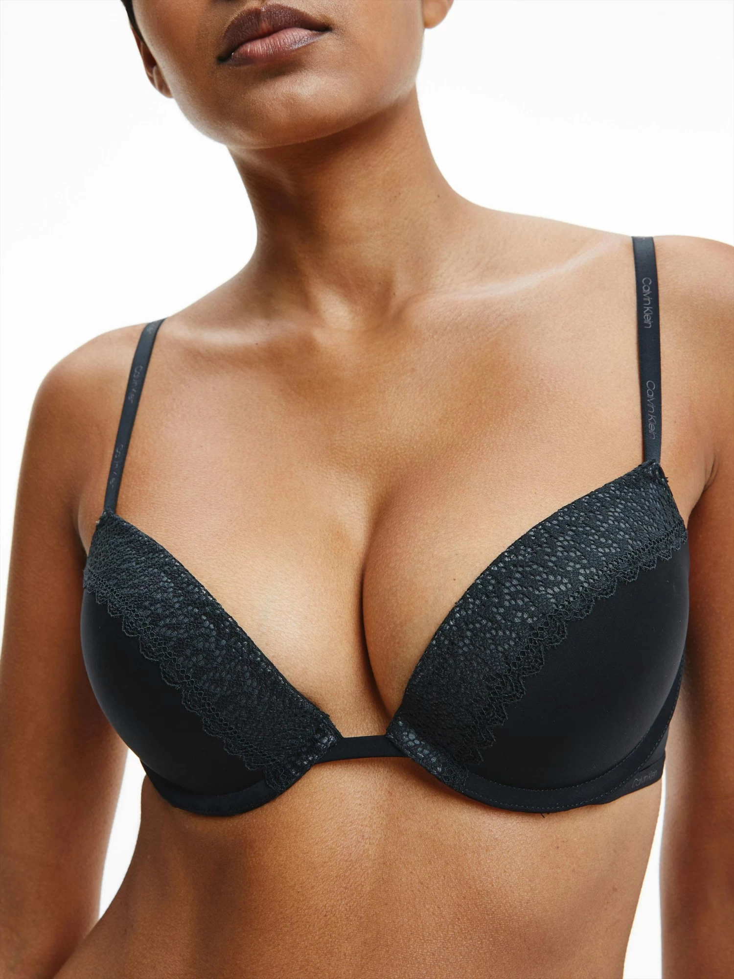 A fresh, new lingerie line with a playful spirit, FLIRTY brings bright colours and modern lace to feminine silhouettes that are ultra sleek to the touch. This bra features a blended nylon elastane fabrication, padded push-up cups, underwire support, soft foam padding for natural enhancement, adjustable spaghetti straps, broad lace trim along the cups, and signature elastic straps.
