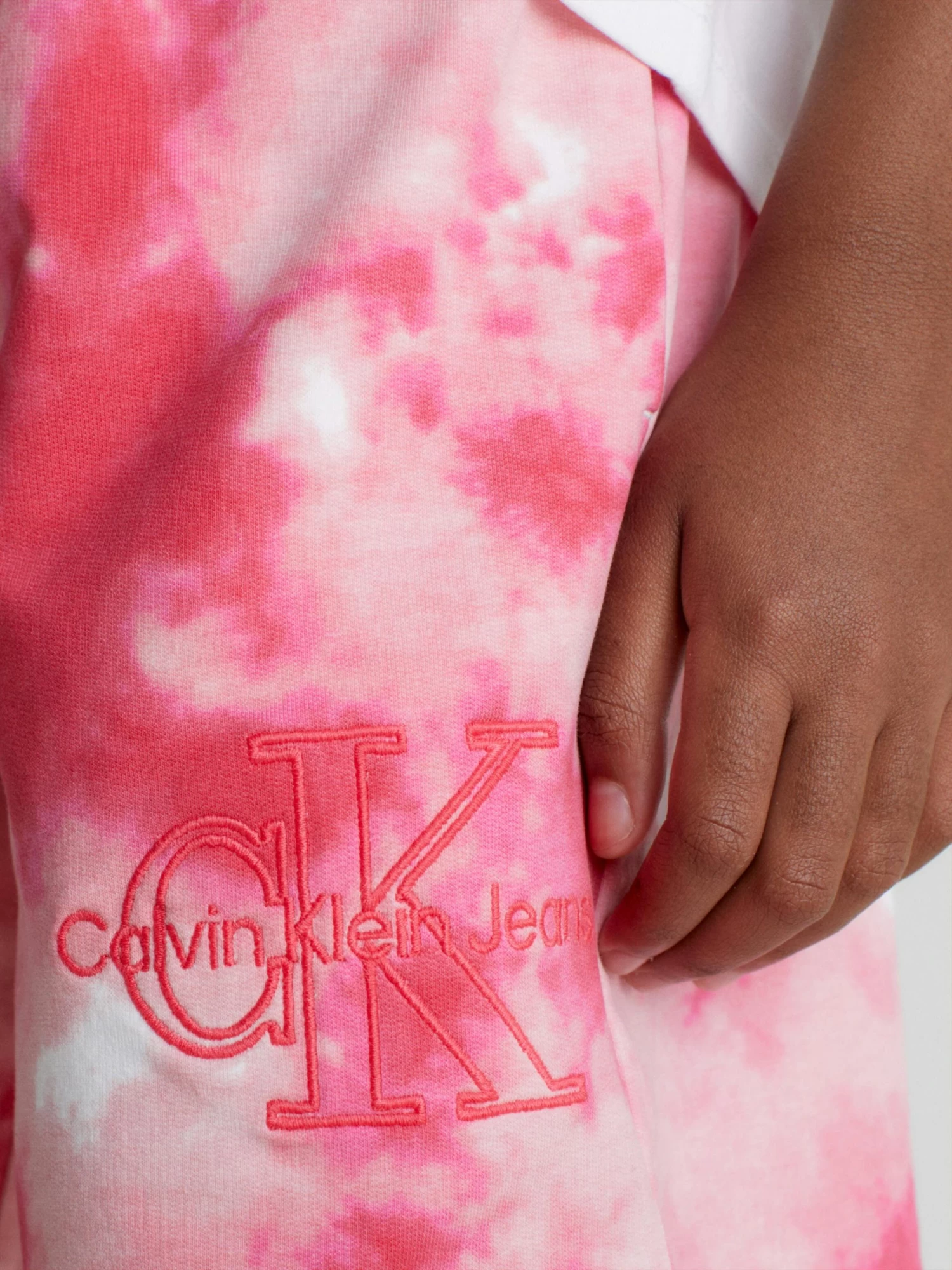 - Calvin Klein Jeans logo embroidery on one leg