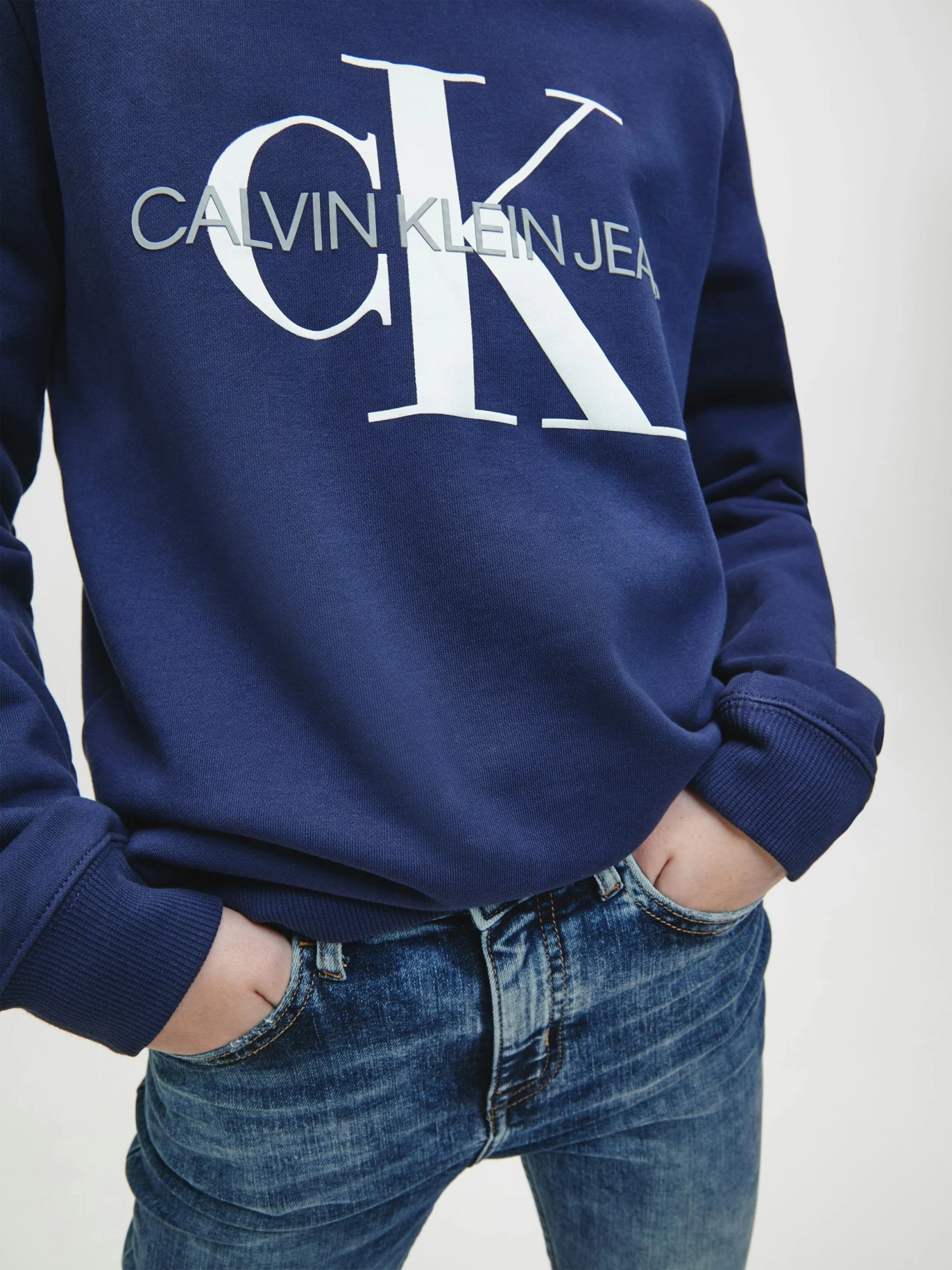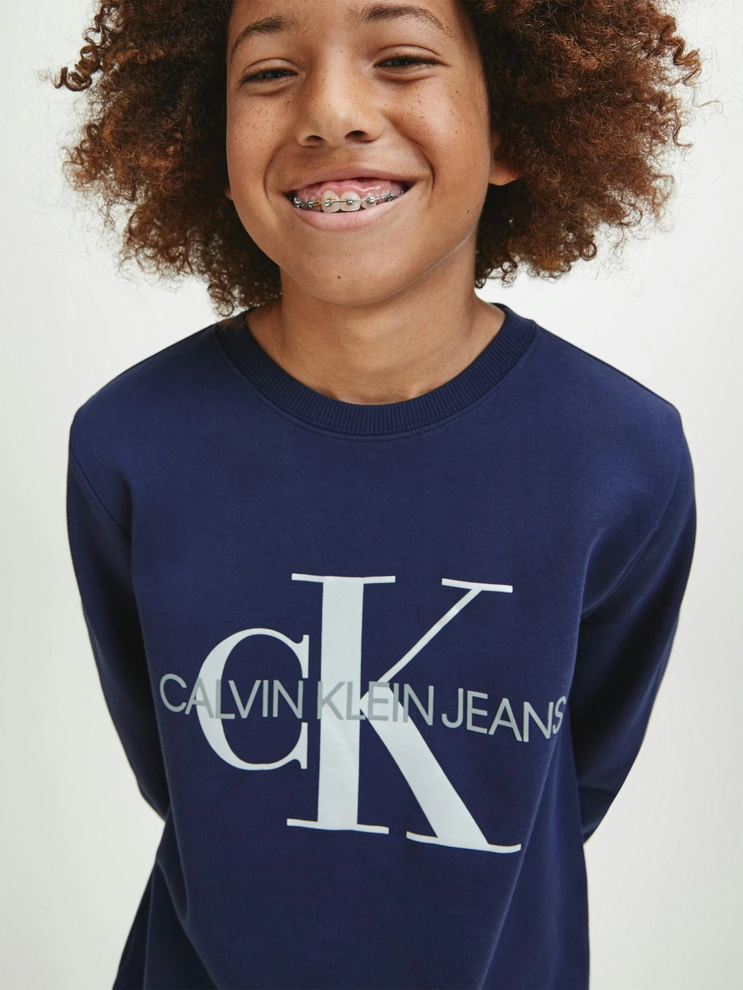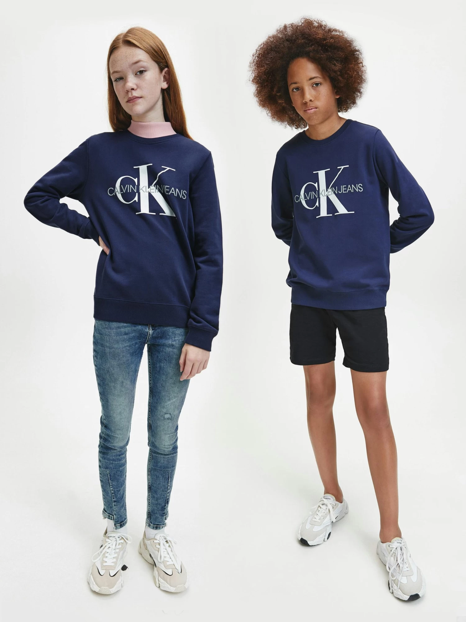 from everyday favourites to style-conscious looks, CALVIN KLEIN JEANS KIDS combines quality materials and trend-perfect colours with iconic logos on directional designs. this sweatshirt features an organic cotton fabrication, regular fit silhouette, crew neckline, rib-knit finishings, and a logo print on the chest.