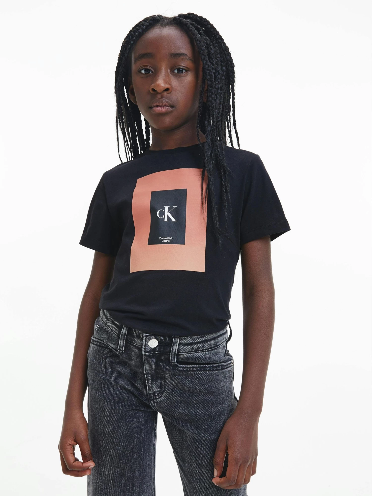 - Calvin Klein box logo at the chest