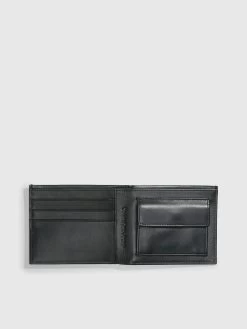 The Leather Bi-Fold Wallet by Calvin Klein is crafted from a smooth leather. Complete with an embossed logo, 3 card slots, bill slot and coint pocket. In purchasing this wallet, you are supporting more responsible leather production through the Leather Working Group.