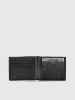 The Leather Bi-Fold Wallet by Calvin Klein is complete with Calvin Klein metal lettering on the front and crafted from box leather.