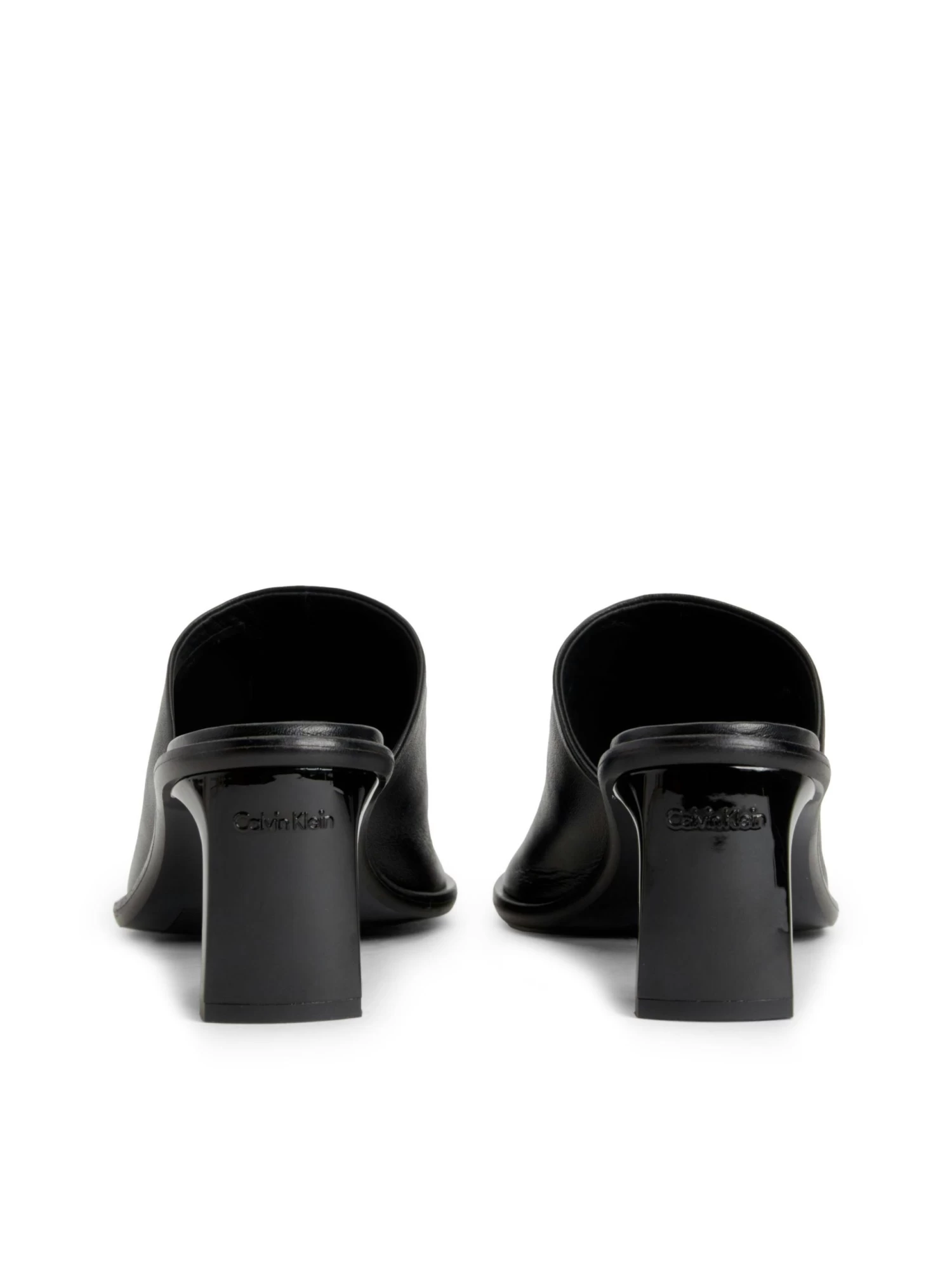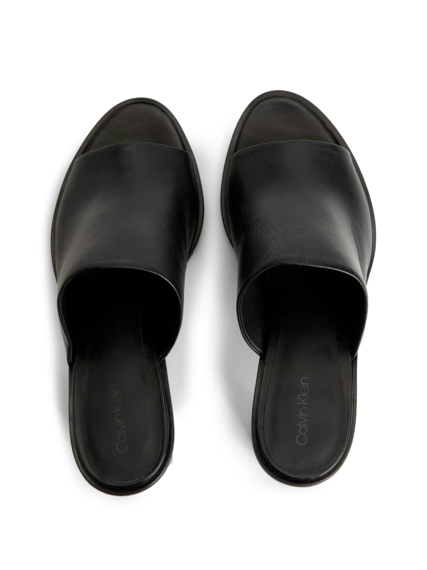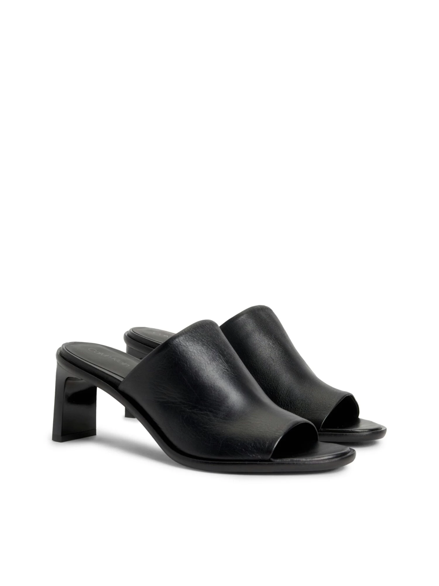 Update your footwear collection with these Leather Heeled Mule Sandals from Calvin Klein. In purchasing these sandals, you are supporting more responsible leather production through the Leather Working Group.