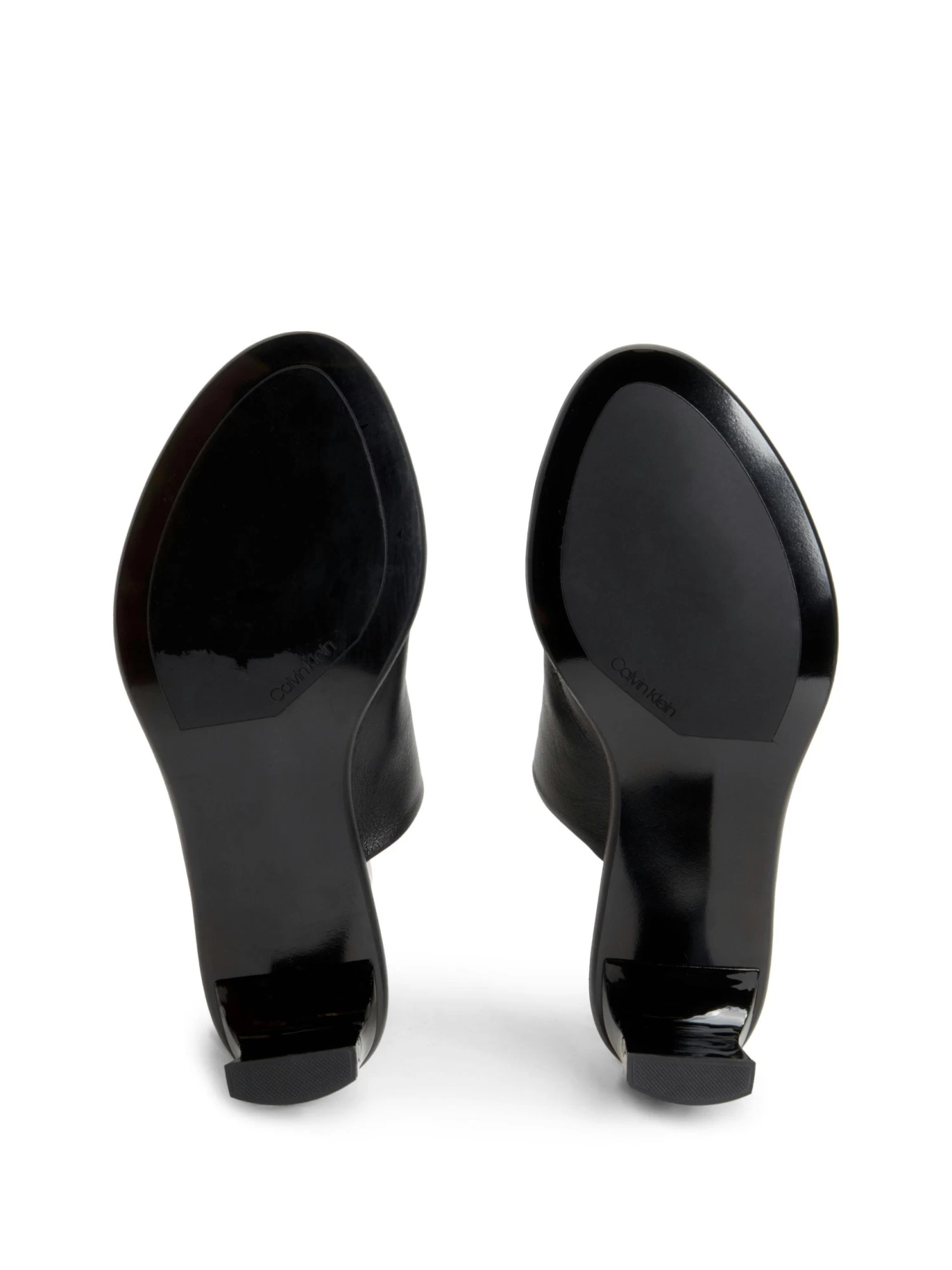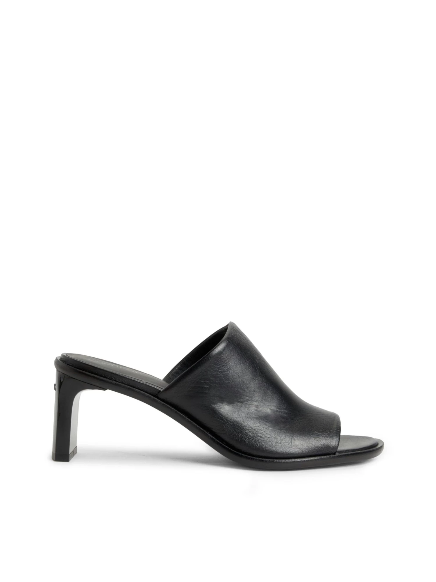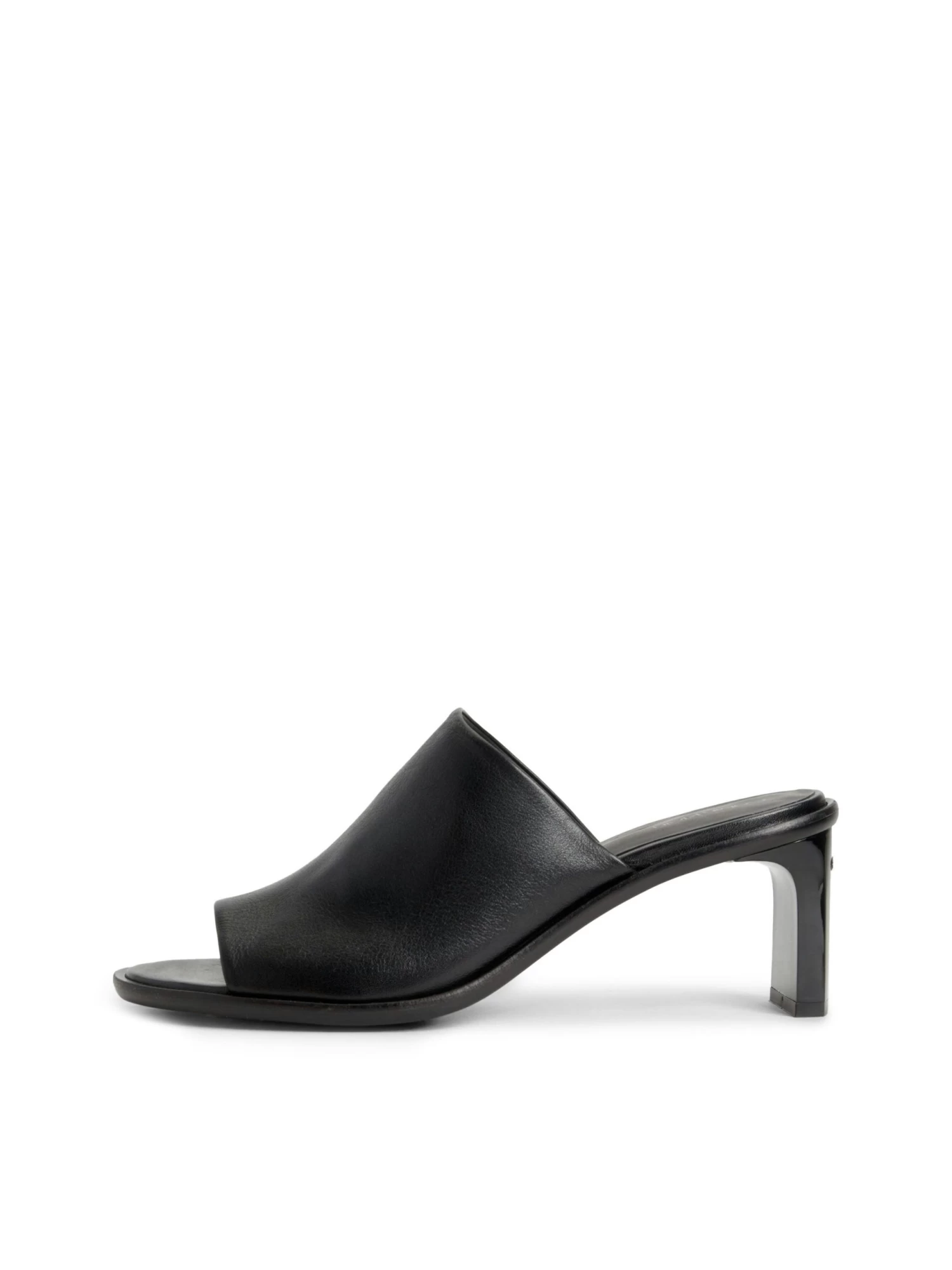 Update your footwear collection with these Leather Heeled Mule Sandals from Calvin Klein. In purchasing these sandals, you are supporting more responsible leather production through the Leather Working Group.