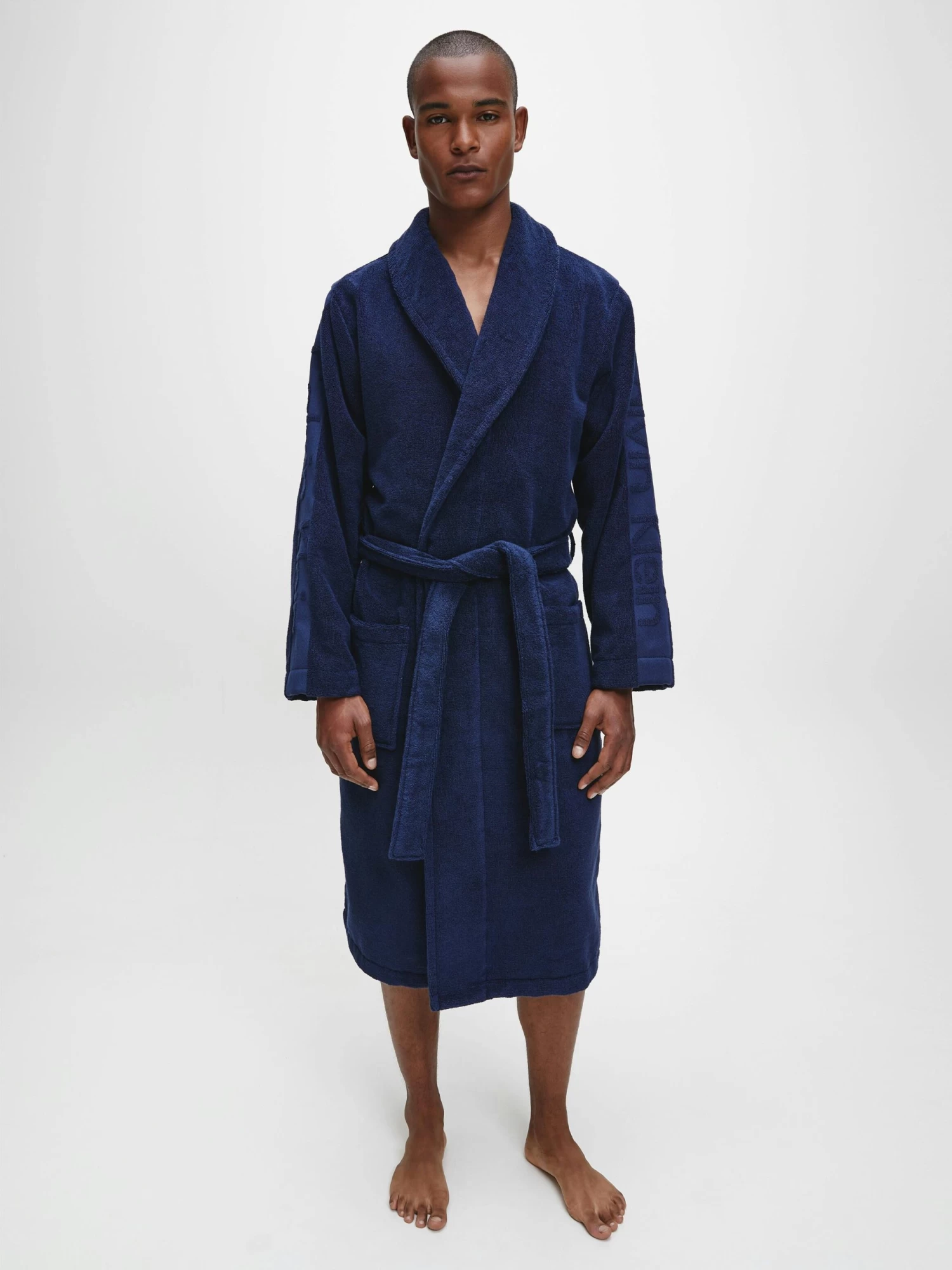 featuring a lightweight fabrication, this robe sports a fabric tie belt, calvin klein branding and a plush finish.