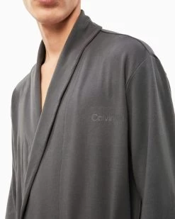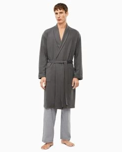 Minimal, eco-friendly designs with a true aesthetic. Our MODERN STRUCTURE range is created with recycled materials topped by iconic branding in a modern matte and shine finish. This bathrobe features a cotton terry fabrication, shawl neckline, long sleeves, self-tie belt at the waist, patch pockets at the hips, and a logo detail on the chest.