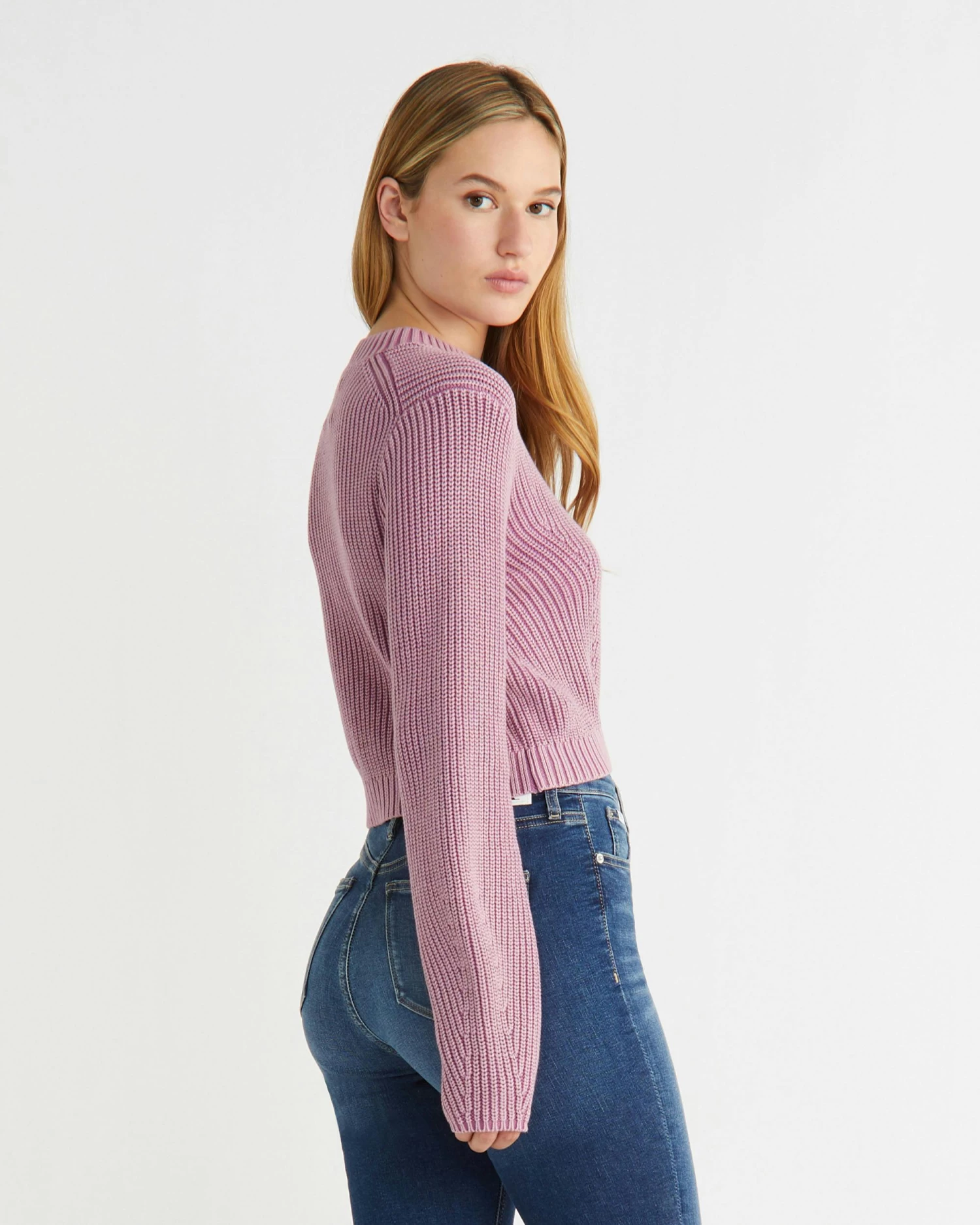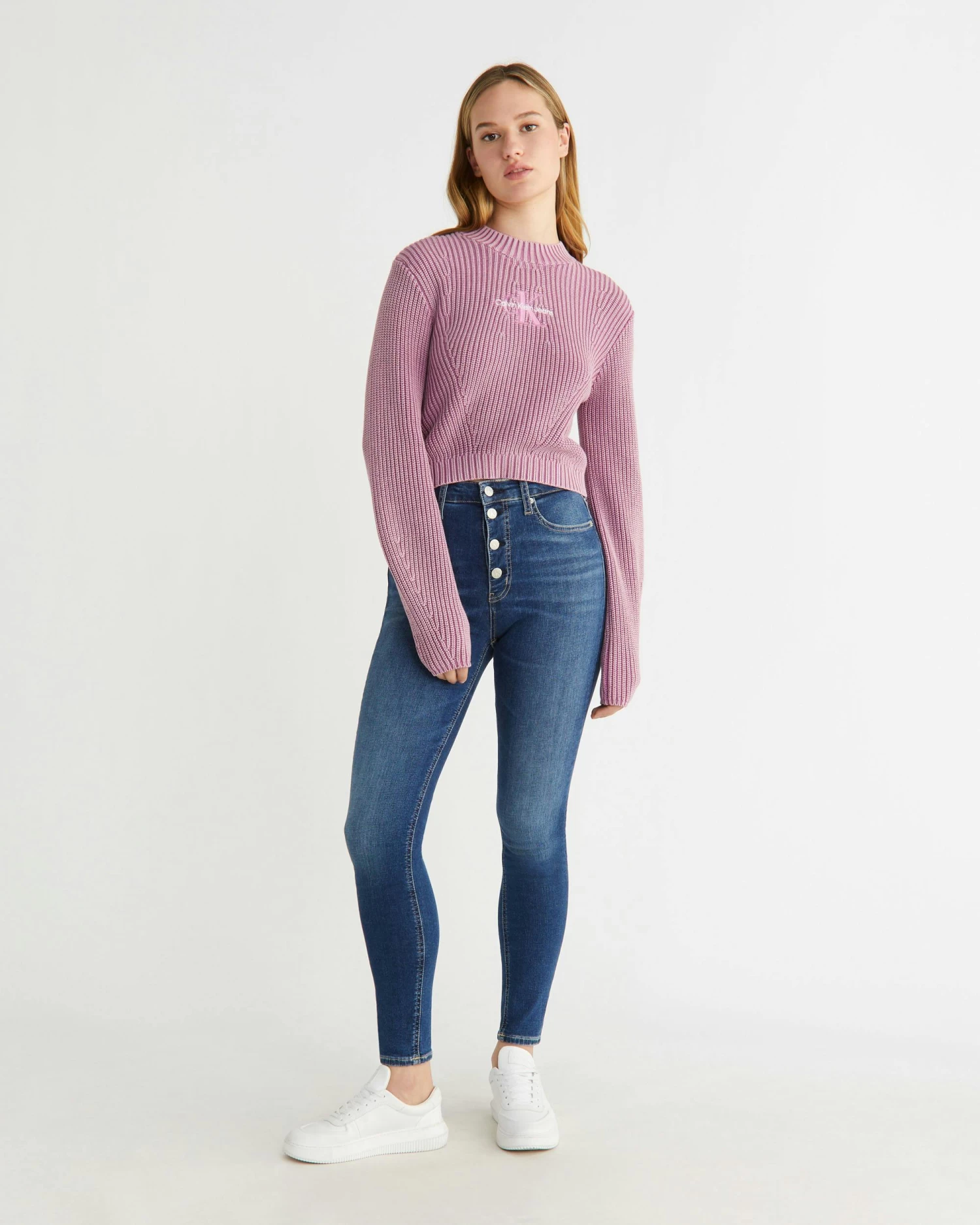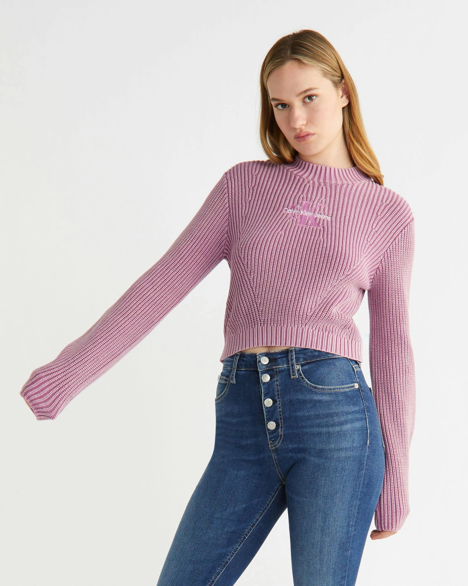 The Monogram Logo Sweater by Calvin Klein is crafted from an acid wash cotton fabrication with crew neckline and shiny CK monologo embroidery on the chest.