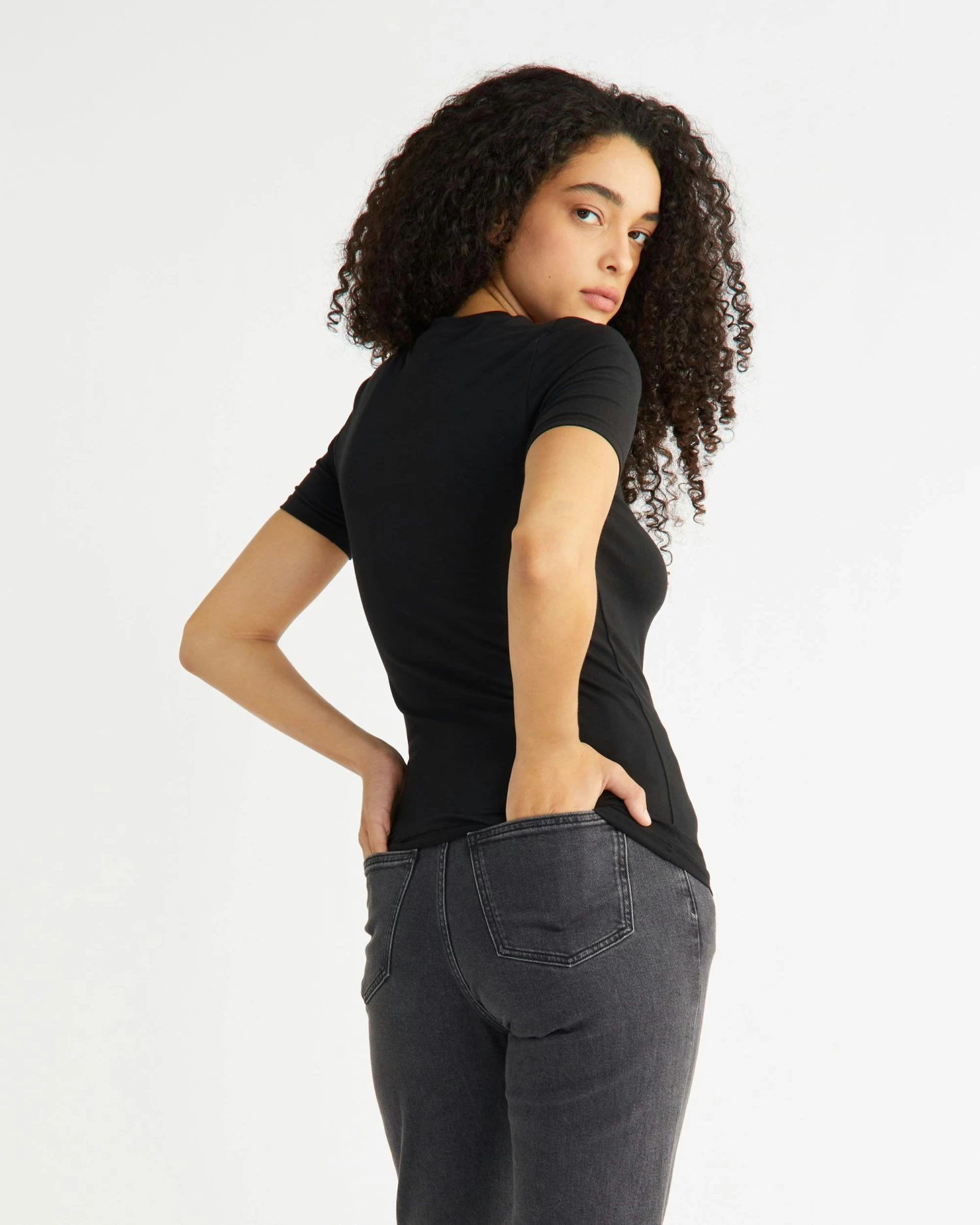 - Beatrys wears size S t-shirt. Model’s Height: 173cm/5’8”. Bust: 86cm/34”. Waist: 66cm/26”.