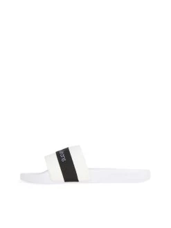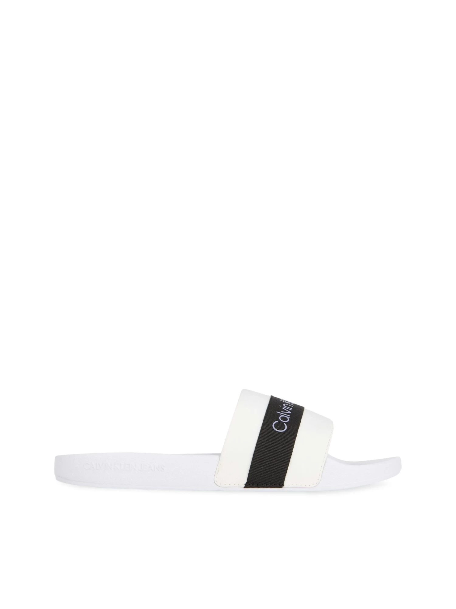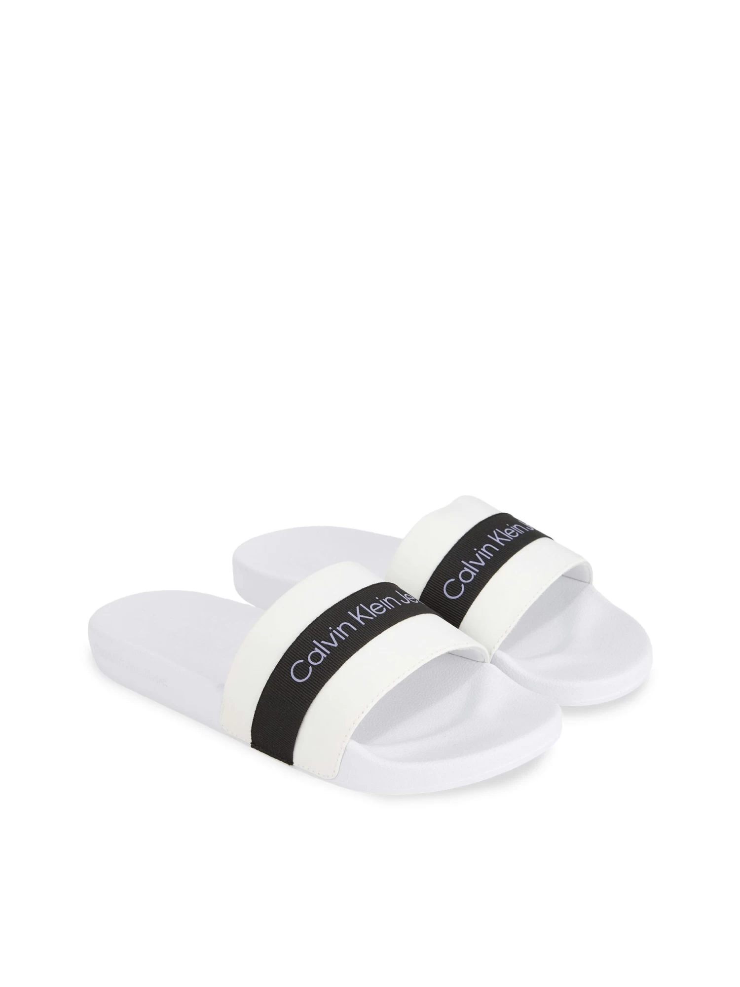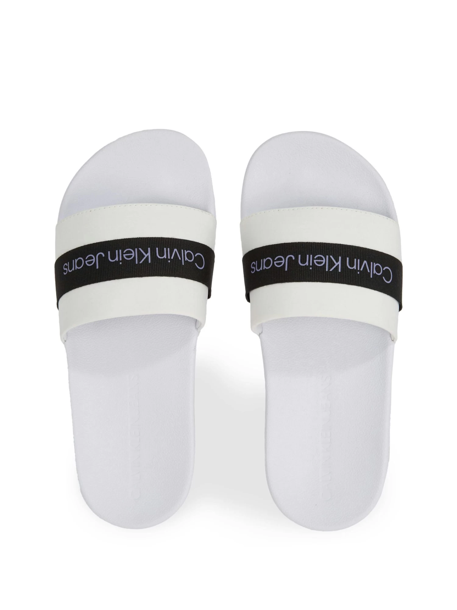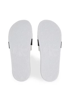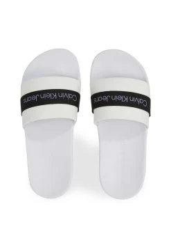 Update your footwear collection with these Recycled Logo Slides from Calvin Klein. The slider upper is crafted from 51% recycled polyester, excluding trims.