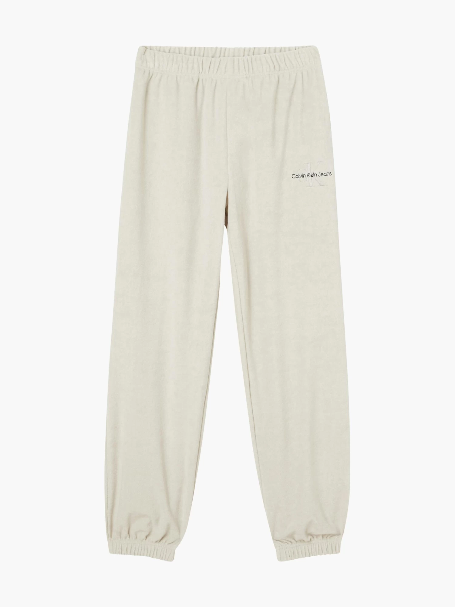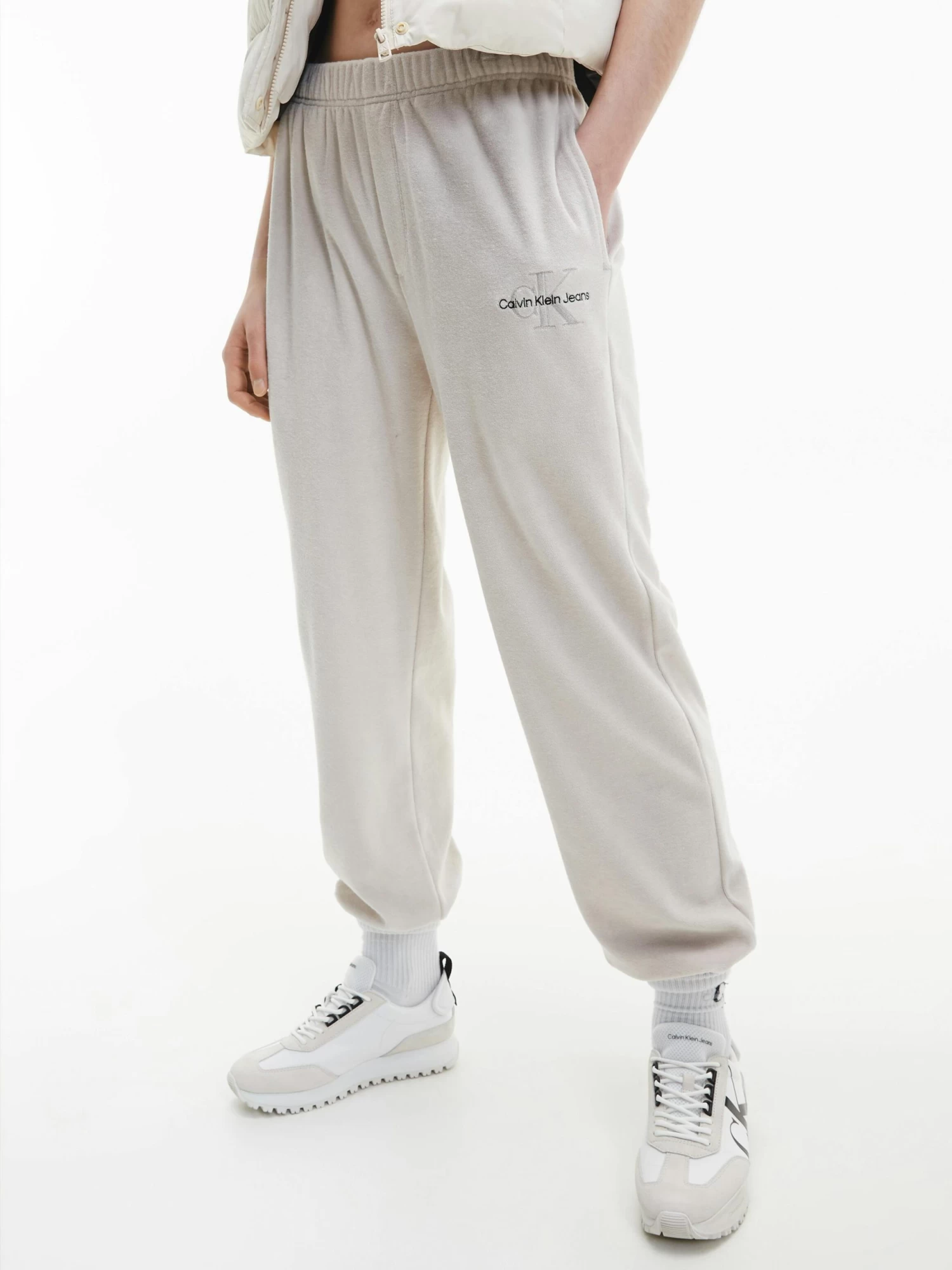 Made from a soft touch terry-towelling cotton for ultimate comfort, these jogger pants are cut to a regular fit with elasticated ankle cuffs. Features slit front pockets, a comfort waistband, and CK logo embroidery on the leg.
