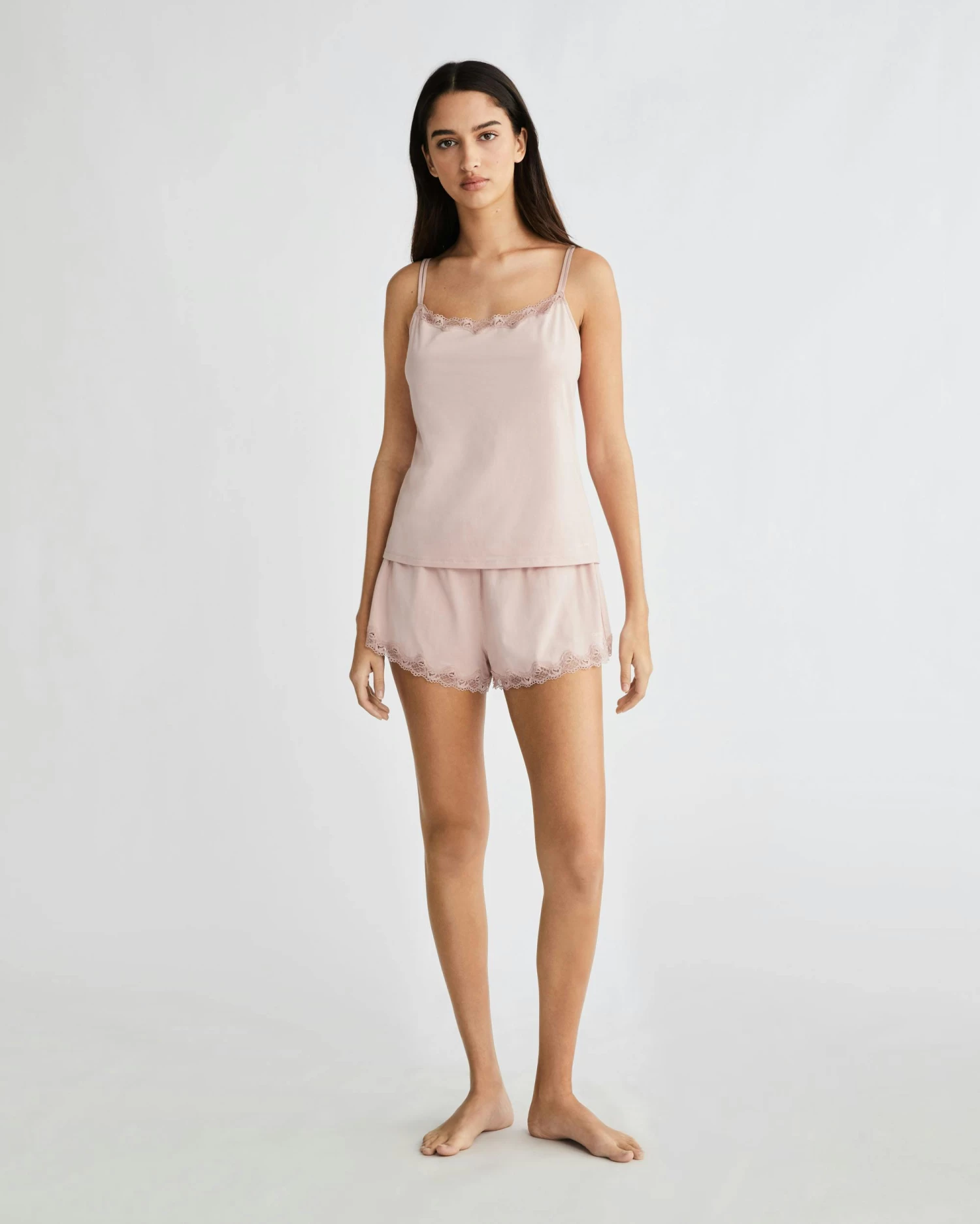 Update your pyjama wear with this set from Calvin Klein. From the brand’s sensual cotton range, the set features strappy cami and shorts. Made from a soft organic cotton blend, perfect wear for comfortable sleep.