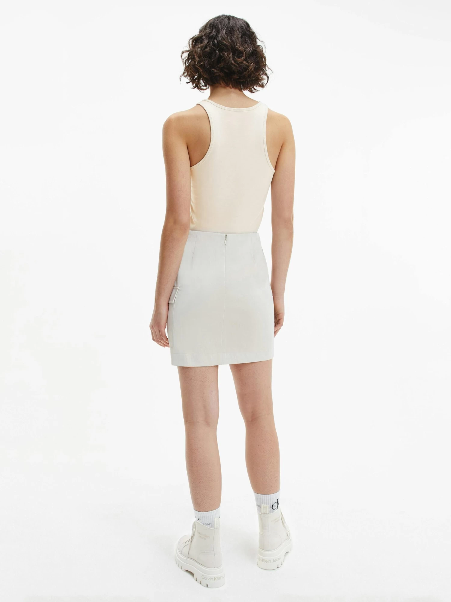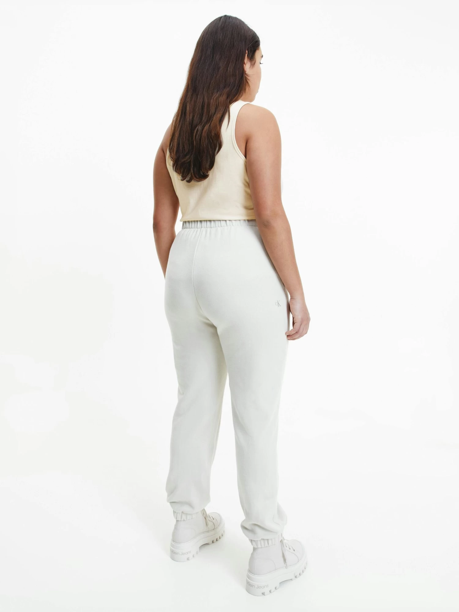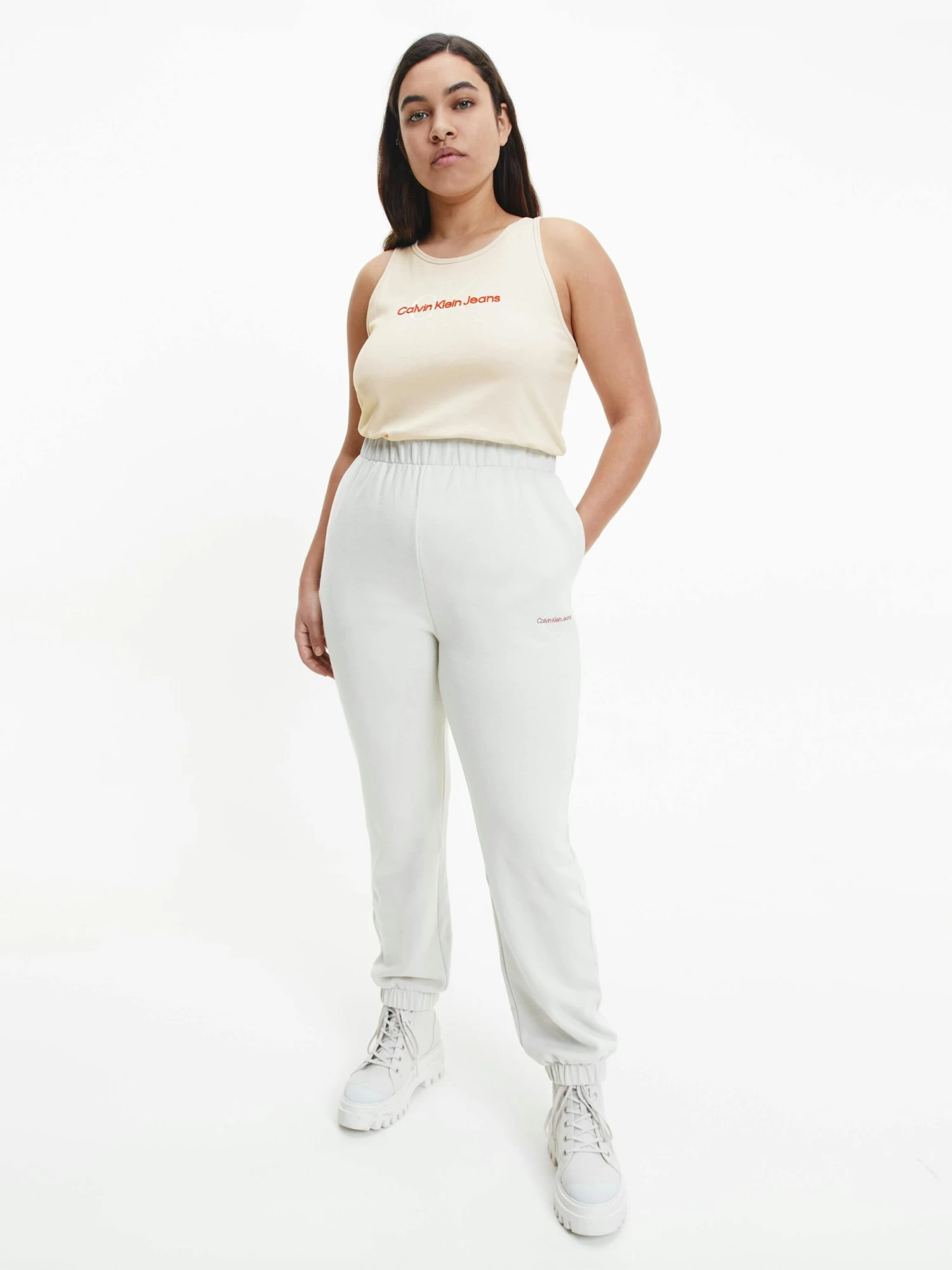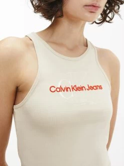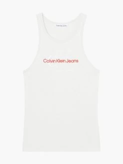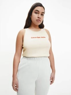 Clean. Effortless. Inclusive. Discover quintessential Calvin styles in an extended size range, designed for every body. This tank top is crafted from a cotton stretch blend featuring a slim fit, scoop neckline, racer back design and a Calvin Klein monogram logo on the chest.