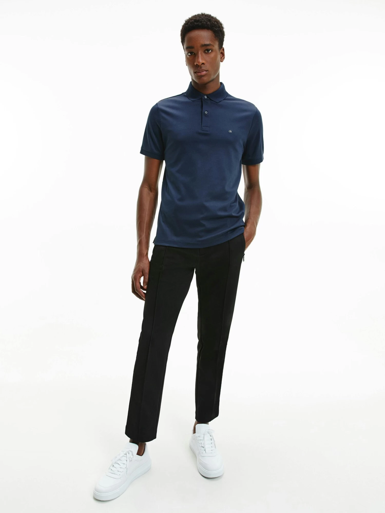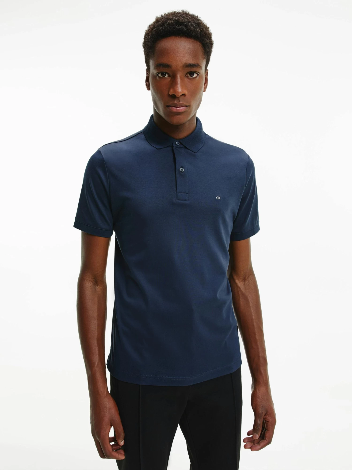 Modern. Sharp. Innovative. Calvin Klein Menswear offers a premium selection of men’s styles from tailored suits to luxury sportswear. This polo shirt is crafted from cotton jersey interlock with a liquid touch fabrication for superior softness, slim fit, polo collar with two-button placket, short sleeves, logo binding inside the neckline, and an embroidered logo on the chest.