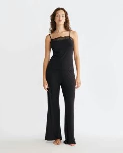 Unwind after a busy day with our selection of sumptuously soft SOPHISTICATED LOUNGE pieces designed with comfort in mind. This cami top features a soft modal satin fabrication, regular fit, sleeveless styling, slim shoulder straps, and logo detailing.