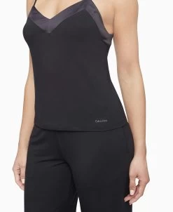 Unwind after a busy day with our selection of sumptuously soft SOPHISTICATED LOUNGE pieces designed with comfort in mind. This cami top features a soft modal satin fabrication, regular fit, sleeveless styling, slim shoulder straps, and logo detailing.