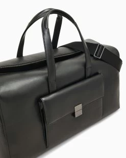 This Weekender Bag by Calvin Klein is crafted from a faux leather exterior. Complete with a magentic iconic logo hardware on the front, top handles and optional adjustable shoulder straps.